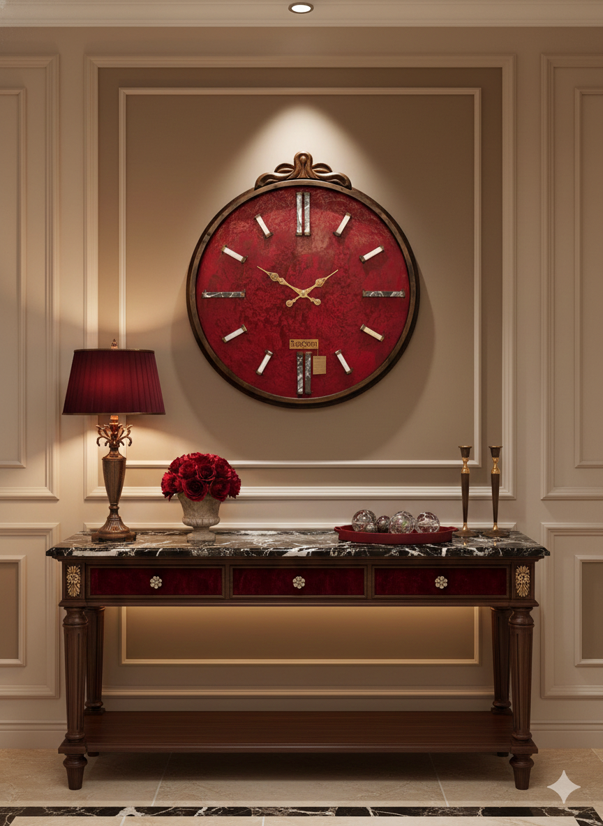 ساعت دیواری چوبی زرشکی رنگ، از کار های بسیار لوکس و پر فروشمونه که به تازگی موجود شده و با انتخابش، چشم همه به دیوار خونتون میخکوب میشه